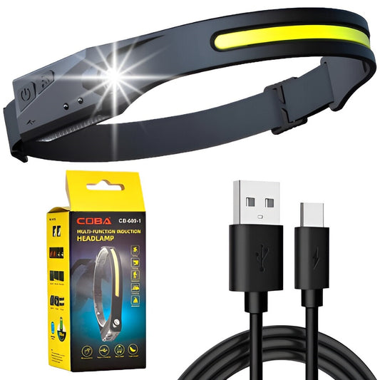 Lanternă de Cap Reîncărcabilă HOZRO, cu 5 LED-uri Puternice, Încărcare 220V și Auto, Culoare Neagră
