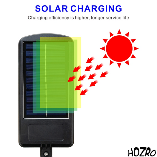 Lampa Solară Stradală de Exterior cu Telecomandă HOZRO, Model W788B-2, Ajustabilă, 168 LED-uri SMD Ultra-Luminoase, Lumina Alb Rece, 3 Moduri de Funcționare, Senzori de Mișcare și Lumină, Iluminare Continuă, Rezistență la Apă IP65, Unghi 120°, Carcasă ABS