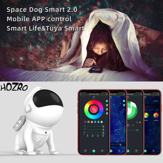 Proiector Astronomic HOZRO, Space Dog cu Design 3D Inteligent, Proiecție Stele și Galaxii în 360°, Lumină Ambientală Reglabilă și Funcție Bluetooth Music Player – Ideal pentru Dormitor, Relaxare, Copii și Decor Modern