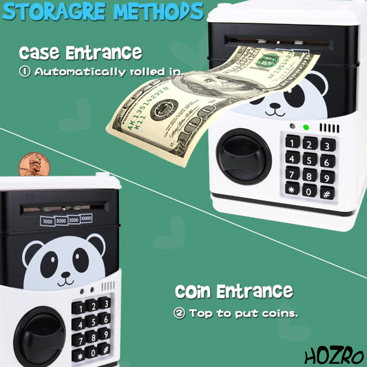 Pusculiță digitală HOZRO, cu Cifru si afișaj LED, încuietoare electronică și design drăguț de panda, ideală pentru copii pentru a învăța economisirea și gestionarea banilor