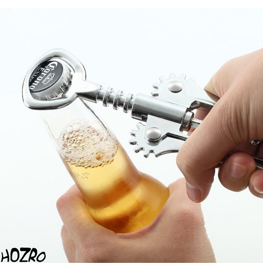 Tirbușon Profesional Manual HOZRO, din Inox – Deschizător de Sticle de Vin Compatibil cu Dopuri din Plută sau Cauciuc, Design Elegant și Rezistent, Culoare Gri