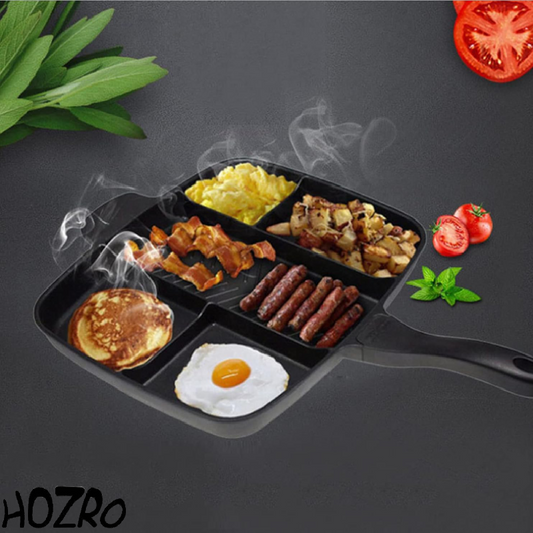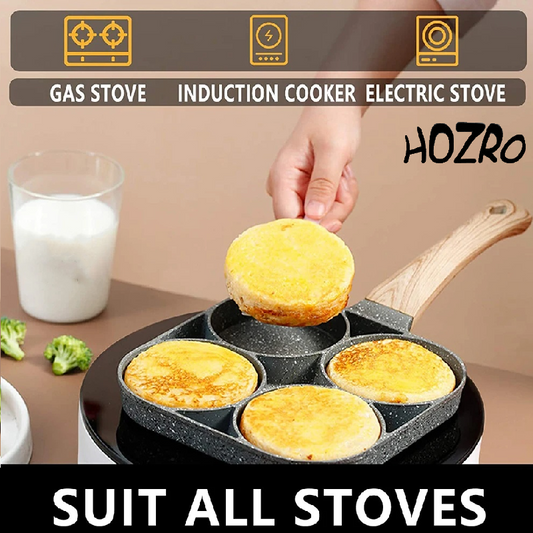 Tigaie HOZRO, antiaderentă cu 4 compartimente pentru ouă, clătite sau burgeri, design practic și rezistent, ideală pentru mic dejun rapid și gătit sănătos