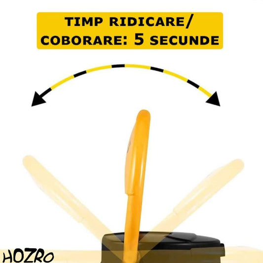 Blocator de Parcare Automat HOZRO, cu Încărcare Solară – Barieră Rabatabilă cu Funcție Anti-Furt, Alarmă Integrată, Control prin Telecomandă și Cheie, Design Robust Negru/Galben pentru Protecția și Siguranța Locului de Parcare