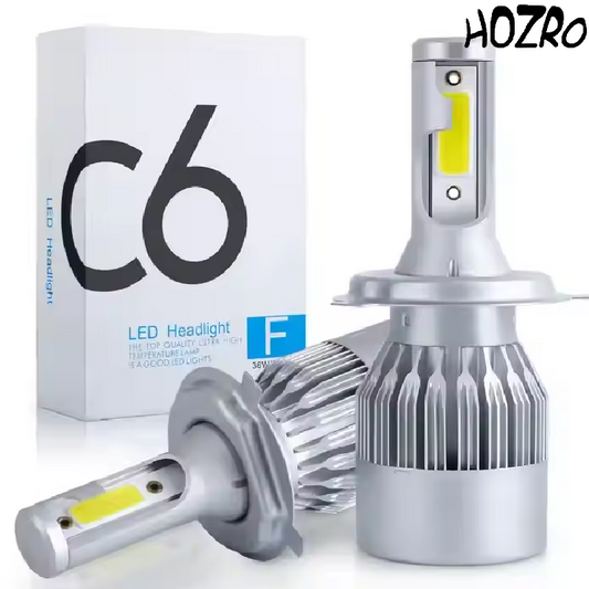 Bec LED Auto HOZRO, C6 H4, 36W 3800LM, lumină albă 6000K, tehnologie COB, economisire de energie și durată de viață extinsă, compatibil pentru faruri mașini și motociclete