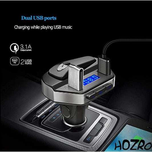 Modulator FM HOZRO, Bluetooth 5.0, Transmitator FM cu functie de incarcator auto quickcharge 3.0 si Casca Bluetooth