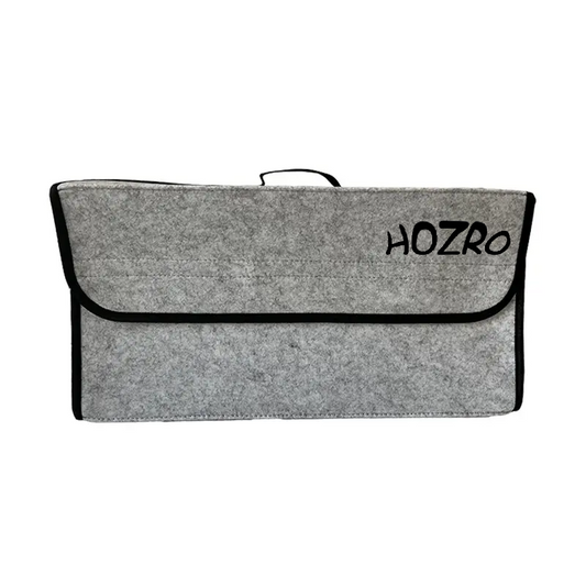 Geantă organizator auto HOZRO, din pâslă, model pliabil, multifuncțională, cu închidere tip clapetă și mâner – ideală pentru portbagaj, depozitare documente, unelte sau accesorii auto, design modern, culoare gri cu margini negre