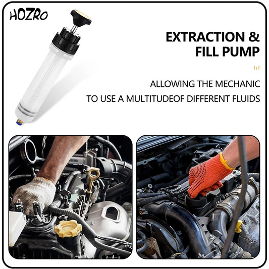 Seringă Profesională HOZRO pentru Aspirare și Umplere Fluide – 200 ml, Extractor Manual pentru Ulei, Lichid de Frână, Antigel și Alte Lichide Auto – Ideală pentru Service și Întreținere Auto