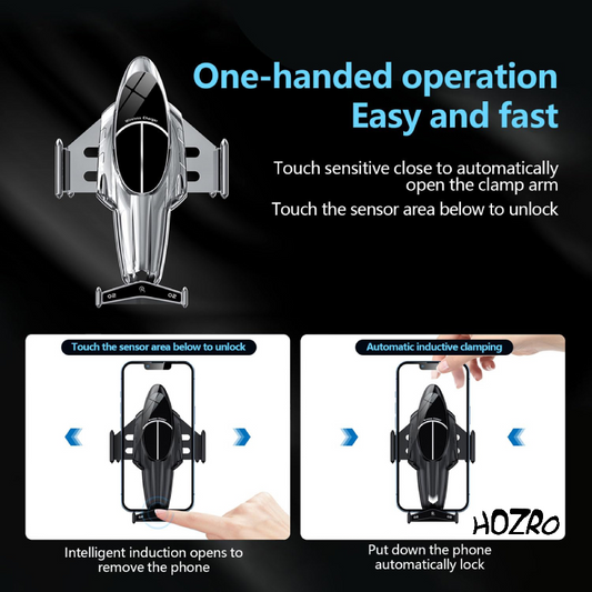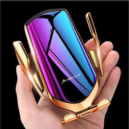 Suport auto HOZRO, pentru telefon, cu incarcare wireless, Model R1, Auriu