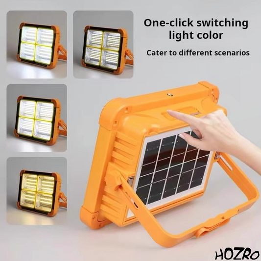 Lampă Solară de Lucru Portocaliu HOZRO, LED Puternic, Reîncărcabilă, Portabilă și Rezistentă, Ideală pentru Atelier, Reparații sau Camping