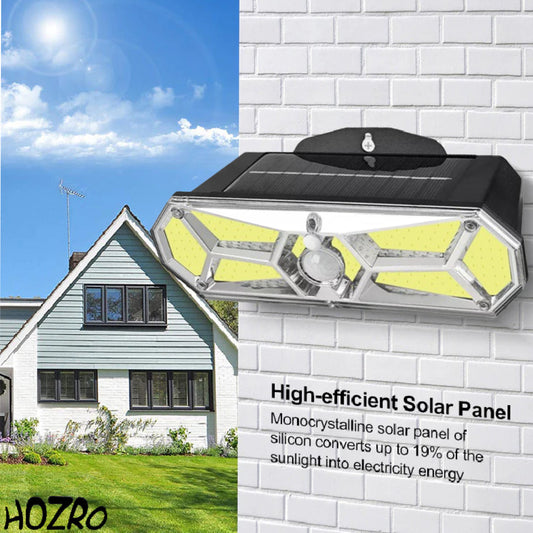 Lampa Solară LED HOZRO, 126 COB cu Senzor de Mișcare — Iluminare Puternică, Panou Solar încorporat, Rezistență IP65/IP66, Moduri Multiple, Autonomie Extinsă