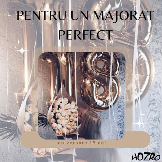 Set 2 Baloane HOZRO, din Folie ESB „18”, Culoare Roz Gold Metalizat, Înălțime 105 cm, Decor Festiv pentru Zi de Naștere, Majorat și Evenimente Speciale, Material Premium, Reutilizabil, Ușor de Umflat cu Aer sau Heliu