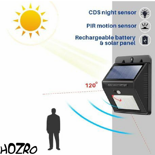 Lampă Solară HOZRO, LED 30W cu Senzor de Mișcare, Protecție IP65, Rezistentă la Apă și Intemperii – Iluminat Exterior Eficient pentru Curte, Grădină, Terasă sau Aleii