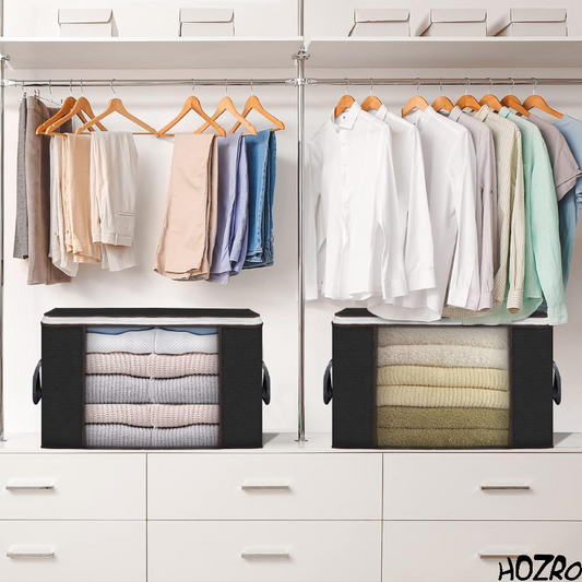 Geantă de Depozitare HOZRO, Negra – Organizator Practic și Spațios pentru Haine, Lenjerii, Jucării sau Accesorii, Material Rezistent și Design Elegant