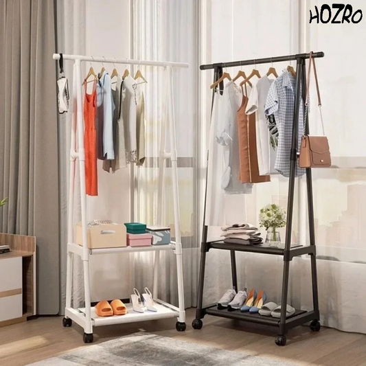 Suport Triunghiular HOZRO, pentru Haine și Umerașe, cu 2 Rafturi Inferioare pentru Depozitare, Design Compact și Stabil, Ideal pentru Dormitor, Hol sau Dressing