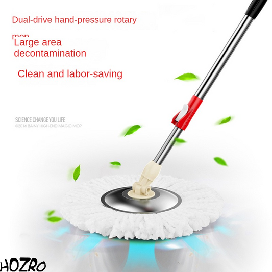 Mop Rotativ 360° HOZRO, Spin Turbo, 3 în 1, cu Găleată pe Roti și Două Camere, Rezerve Incluse, Rotor Metalic, Mâner Telescopic, Microfibră, Roșu/Negru, 45x26x21 cm