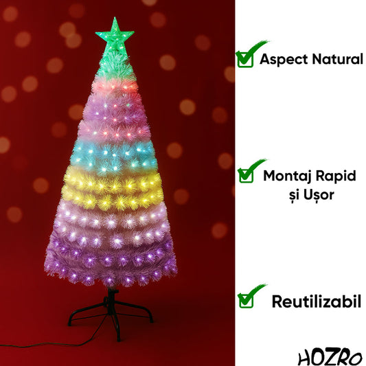 Brad artificial de Crăciun HOZRO, cu Stea Luminoasă - Jocuri de Lumină Multicoloră, Efecte Feerice, Suport Metalic Inclus și Design Elegant pentru un Crăciun Magic și Strălucitor în Orice Locuință sau Spațiu Festiv 🎄