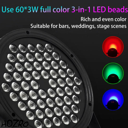 Lumină de Scenă Profesională RGB HOZRO, 60 LED , 1.5W, Efecte Multicolore Dinamice, Iluminare Puternică pentru DJ, Club, Festival sau Evenimente – Design Compact și Consum Redus de Energie