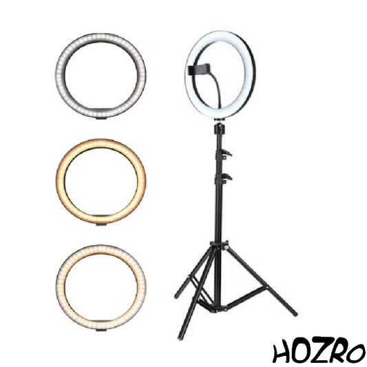 Lampa circulara Ring Light HOZRO, diametru 36 cm/14" LED, lumina naturala/rece/calda, conectare USB, reglaj intensitate, suport telefon, Perfectă pentru Orice Situație