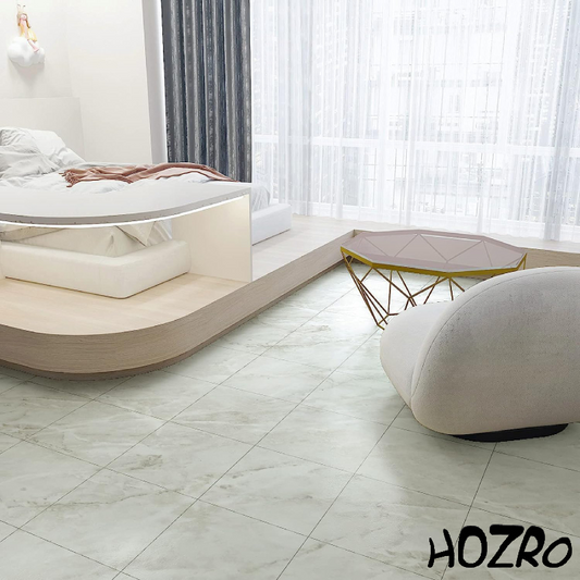 Placi PVC Autoadezive HOZRO, Pentru Podea, Stil Marmura, Grosime 1.4 mm, Culoare Alb, Model ALM 2-9 – Rezistente si Usor de Montat