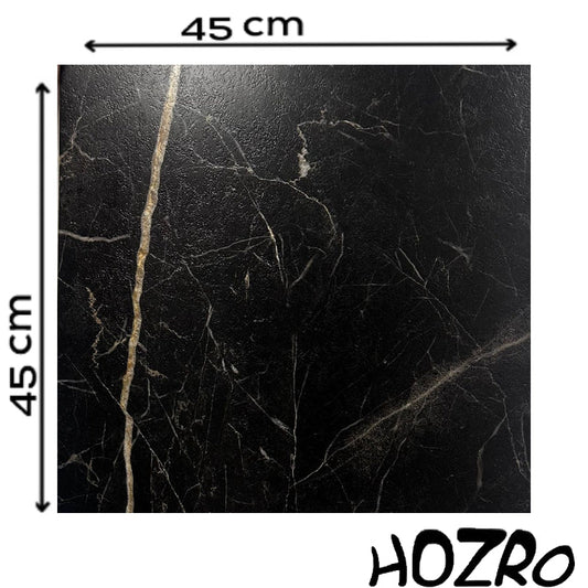 Placi PVC Autoadezive HOZRO, Pentru Podea, Stil Marmura, Grosime 1.4 mm, Culoare Negru/Auriu, Model ALM 2-7 – Rezistente si Usor de Montat