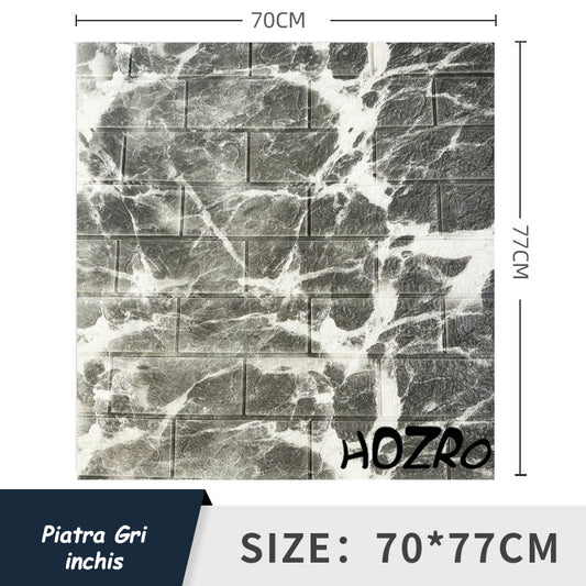 Tapet 3D autoadeziv, Model imitatie caramida, design modern, foarte usor de montat, Piatra Gri Inchis