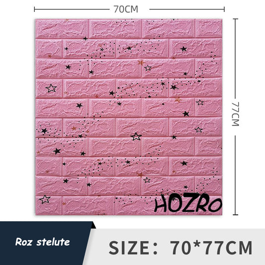 Tapet 3D autoadeziv, Model imitatie caramida, design modern, foarte usor de montat, Roz Stelute