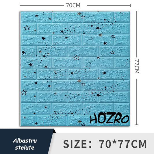 Tapet 3D autoadeziv, Model imitatie caramida, design modern, foarte usor de montat, Albastru Stelute