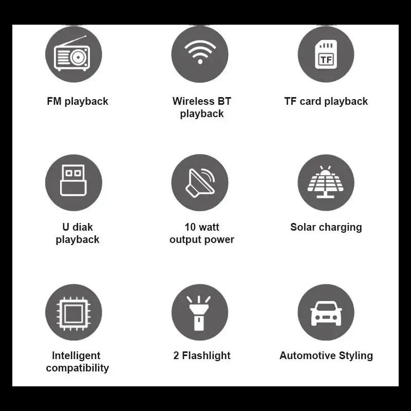 - Funcționalitate 4 în 1 – Combină Bluetooth, radio FM, și porturi pentru USB și TF card, oferindu-ți multiple opțiuni de redare pentru orice moment al zilei.