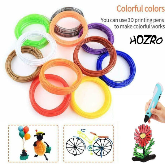 Set 10 Filamente Multicolor HOZRO, pentru Creion 3D PLA 1.75 mm, 5 m Fiecare (50 m Total) – Plastic de Înaltă Calitate, Temperatura de Lucru 160-200℃, Ideal pentru Proiecte Creative și Modele 3D DIY